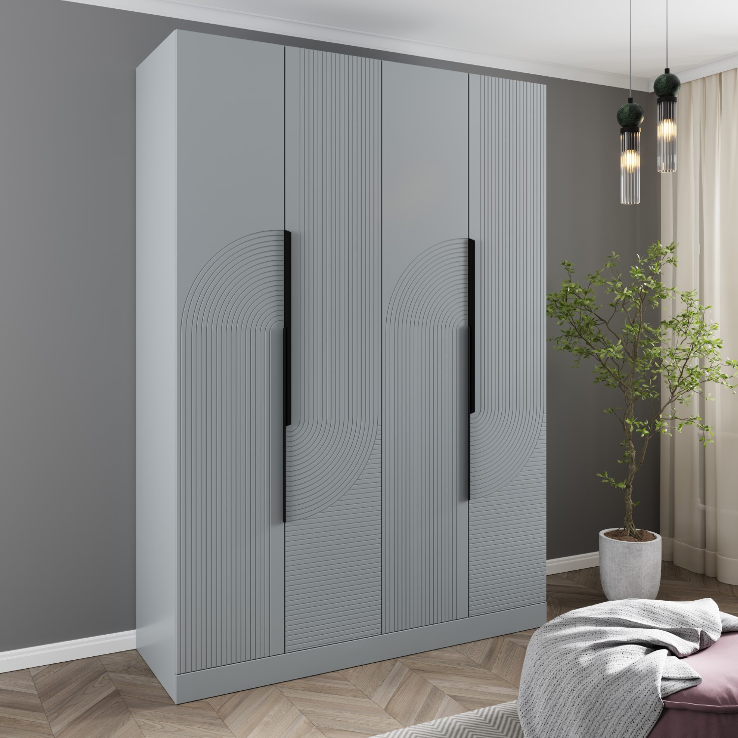 Шкаф 4х дверный распашной со штангой и полками